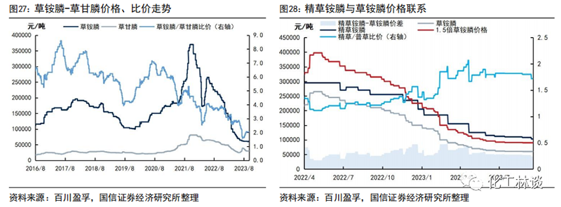防效、性價比優(yōu)勢凸顯,精草銨膦有望逐步替代普通草銨膦。精草銨膦是草銨膦中的有效成分,可實現(xiàn)藥效翻倍、用量減半效果,市場價格約為普通草銨膦的1.5-1.6倍,目前終端制劑的性價比已優(yōu)于普通草銨膦,未來有望逐步替代普通草銨膦,契合國家農(nóng)藥減量增效的政策。